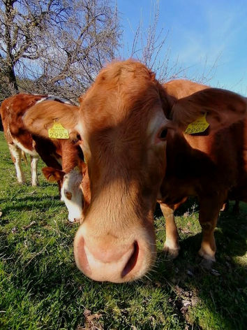At our farm, forestry and livestock farming are two main activities we undertake. We raise young cattle to produce organic meat under the Pohorje Beef brand. We grow fruit trees and vegetables as well. Organic eggs are provided by our chickens.